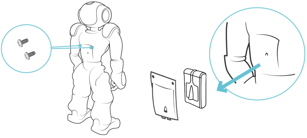 • Place NAO in its casing, starting with the head.