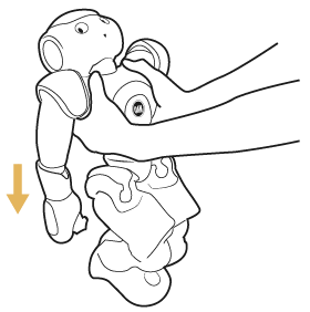 • Put NAO on crouch posture, and place one of your hand on the back and the other under the feet.