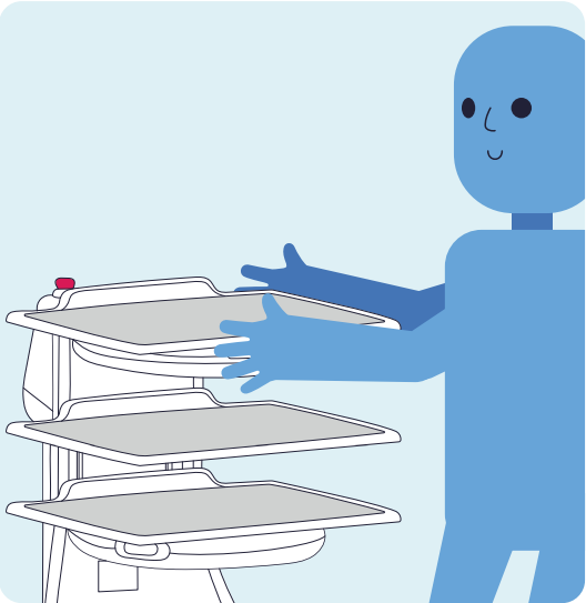 - Place empty accessories on the shelves and press the Tare all shelves button on Plato’s display to calibrate