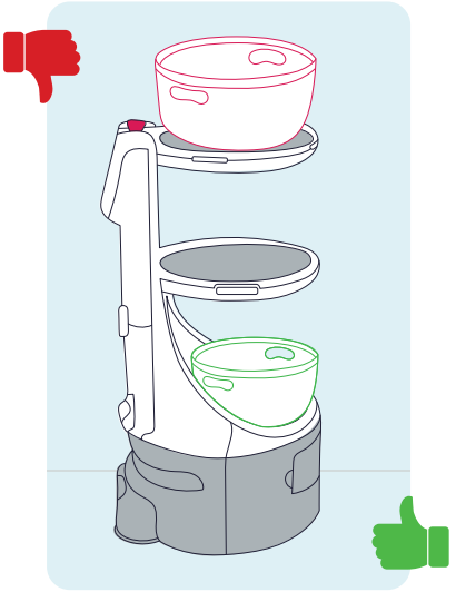 - Do not use the Double rectangular tray, Collecting tub or any large accessories on Plato’s Top shelf