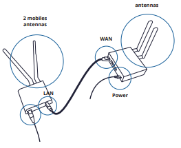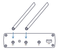 Attach the Mobile antennas to the MOBILE ports on the back of the RUT240