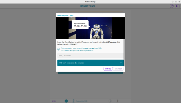 - Press the Robot’s Chest Button to hear its IP address.