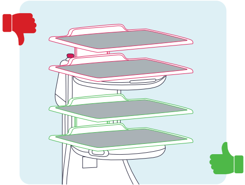 - Do not use the Double rectangular tray, Collecting tub or any large accessories on Plato’s Top shelf